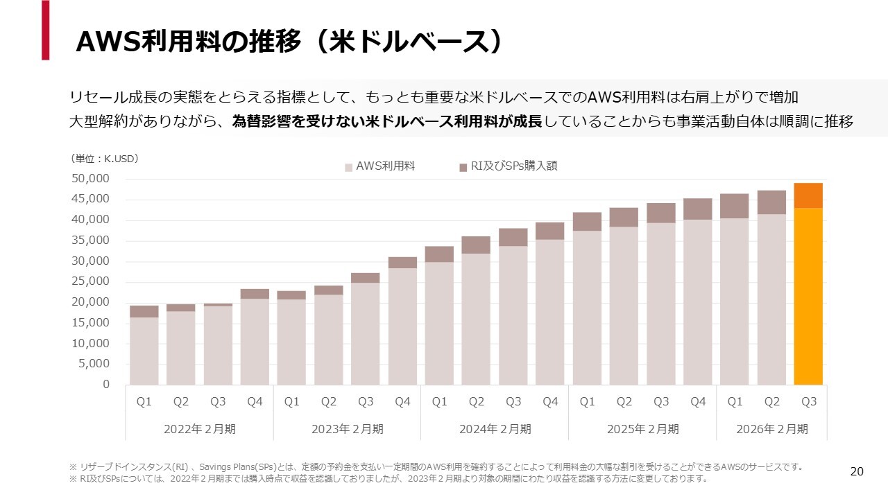 当社のビジネスは為替の影響を受けやすい構造にあるため、ドルベースのAWS利用料は非常に重要な指標です。