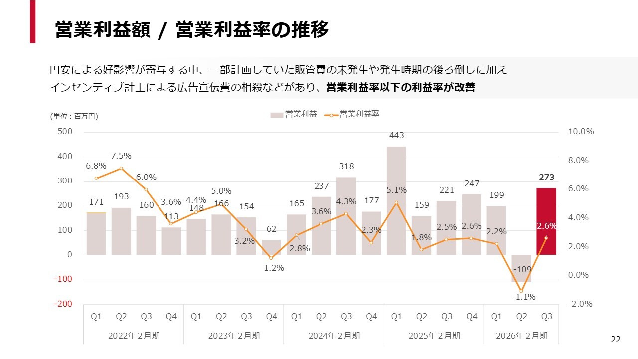 まずは、2026年2月期第3四半期のサマリーです。第3四半期は売上高、利益率ともに大幅に改善しました。