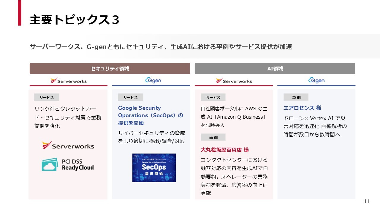 3つ目に、サーバーワークス、G-genともに、セキュリティ領域やAI領域で具体的な事例が出てきました。