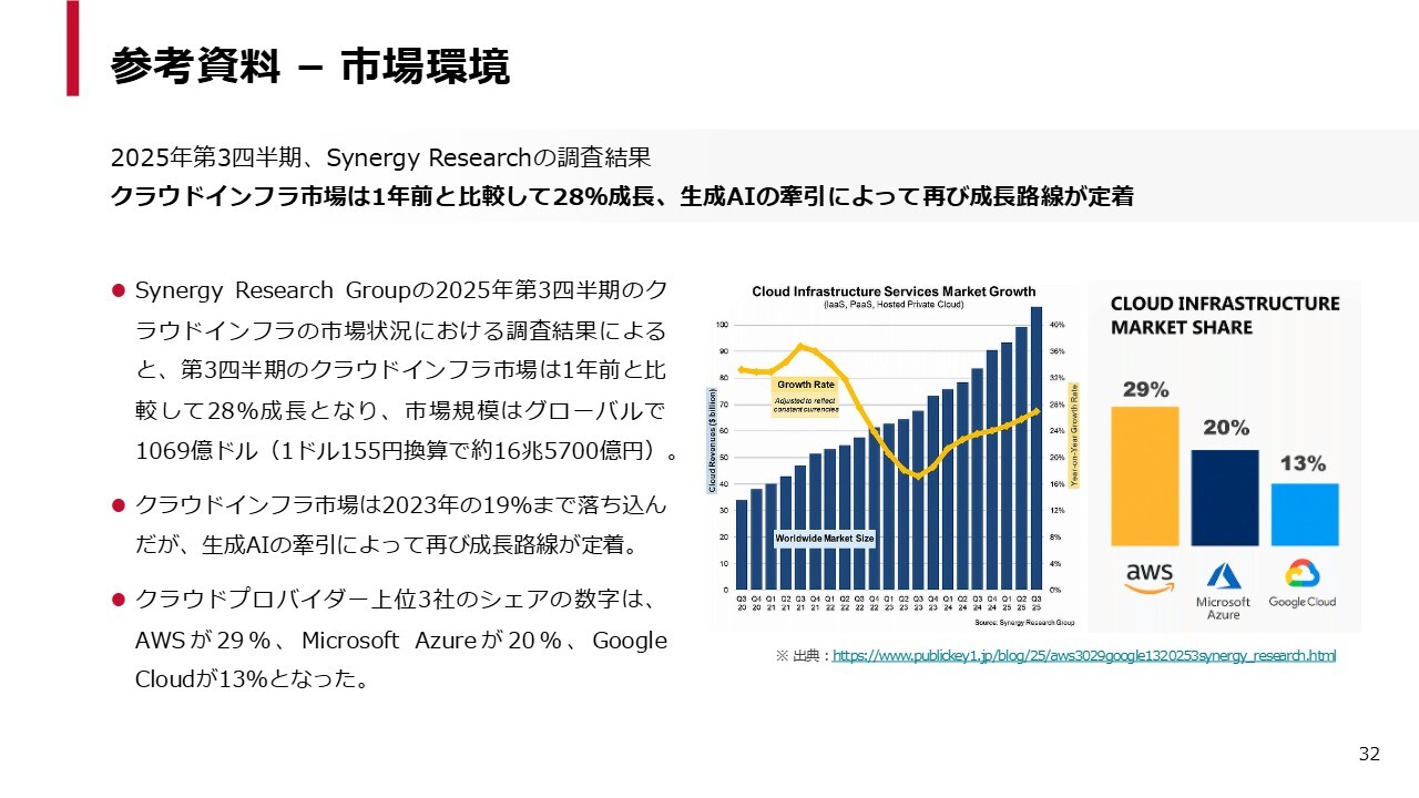 一方で、足元の環境は非常に堅調です。もともとAWSの市場や「Google Cloud」の市場が順調に成長していたところに、AIの登場が加わり、さらに勢いがついています。