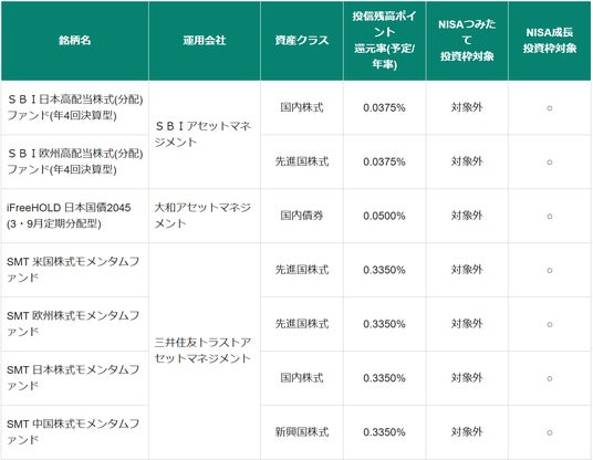 加えて2026年1月26日(月)(予定)からは、「SMTモメンタムファンド」シリーズ、「SBI高配当株式ファンド」シリーズ、「iFreeHOLD 日本国債2045(3・9月定期分配型)」の取扱いを開始します。