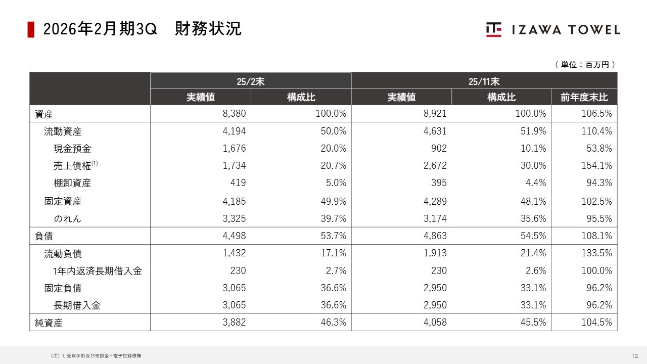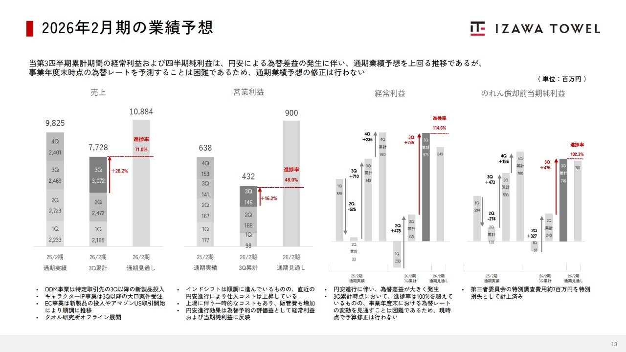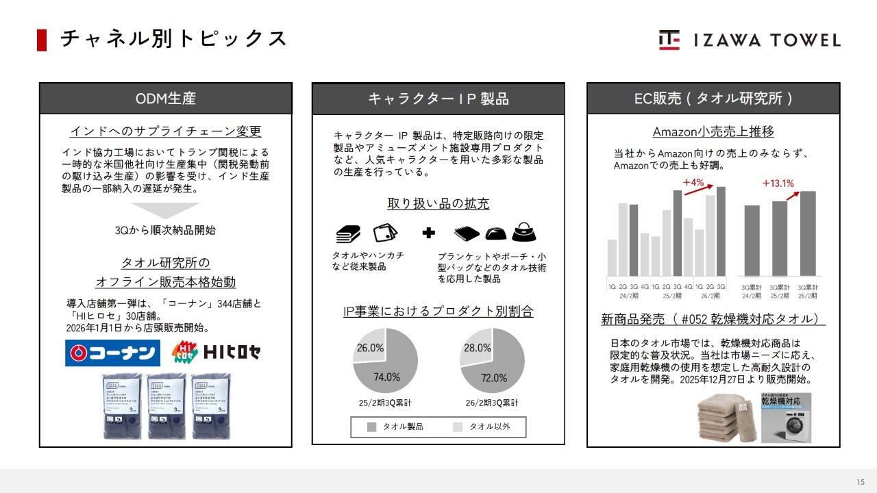 伊沢タオル(365A) 2026年2月期第3四半期決算説明資料 01/09 15:30