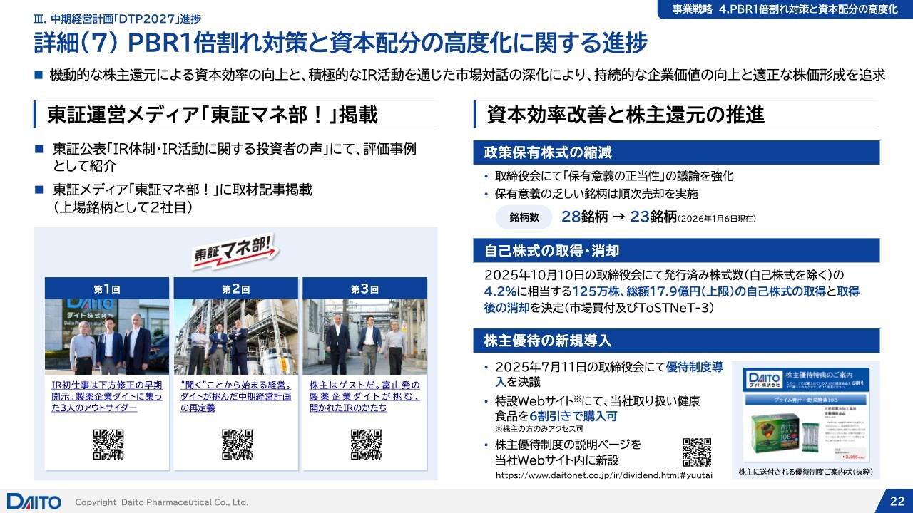 詳細(7) PBR1倍割れ対策と資本配分の高度化に関する進捗
