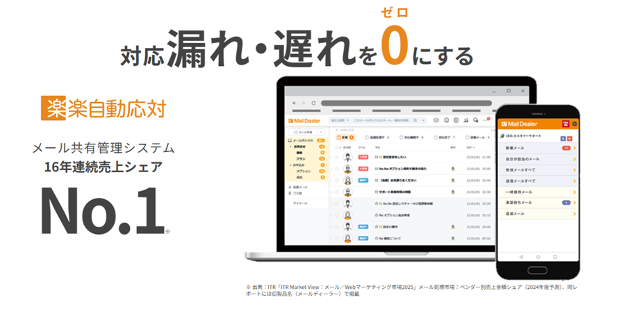 16年連続売上シェアNo.1※!問い合わせ自動応対システム「楽楽自動応対」(旧名称:メールディーラー)