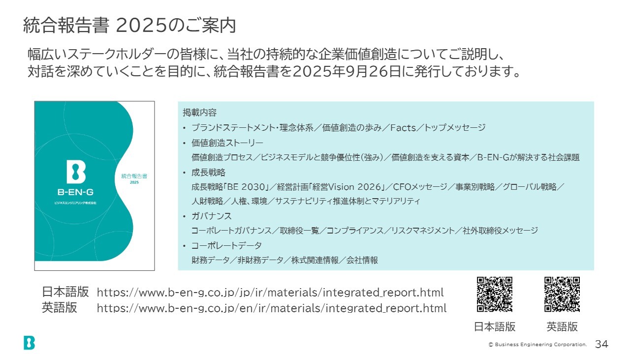 統合報告書をIRの参考資料としてWebサイトに掲載していますので、ご覧いただければ幸いです。