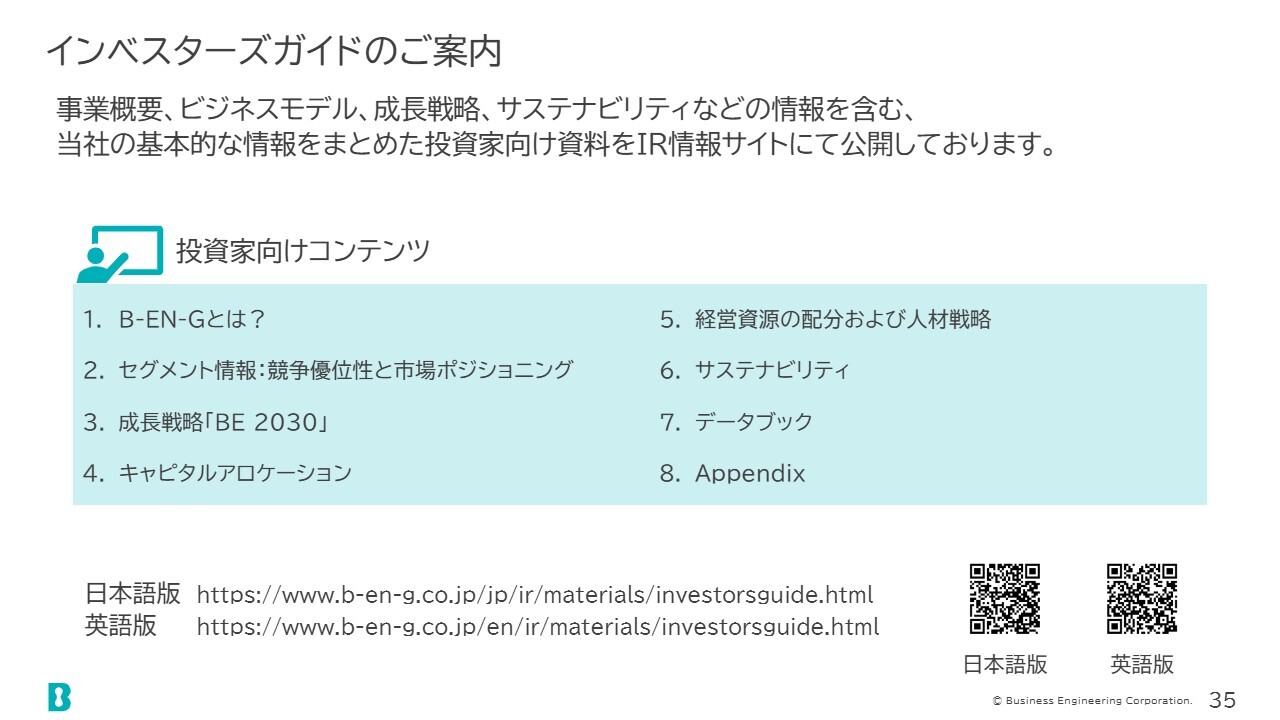 また、インベスターズガイドも随時更新していますので、こちらもご参照いただければ幸いです。