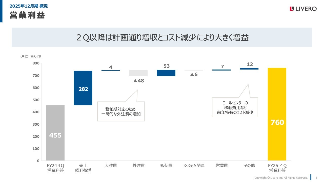 2025年12月期については、下期の伸びがこれまでの期に比べて大きく伸長した結果となっています。次のページでもご説明しますが、下期は繁忙期の準備のため、利益が落ち込む傾向にありましたが、今期は下期においても安定的に利益を出すことができるようになりました。