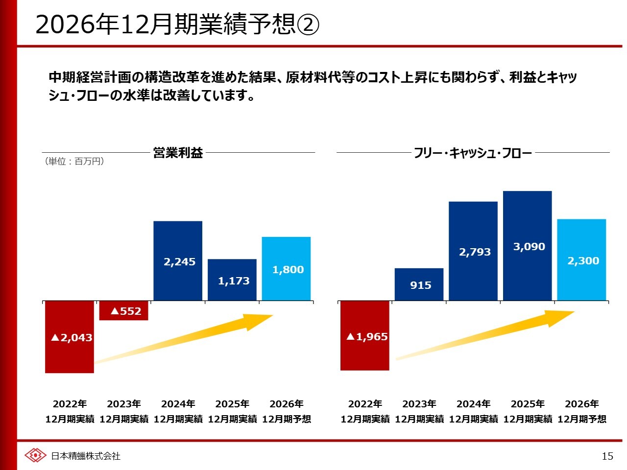 当社としては、これらの中期経営計画に基づく構造改革の成果を今後とも安定的に享受するとともに、新たな施策を通じて利益やキャッシュ・フローのさらなる増加を目指していきます。