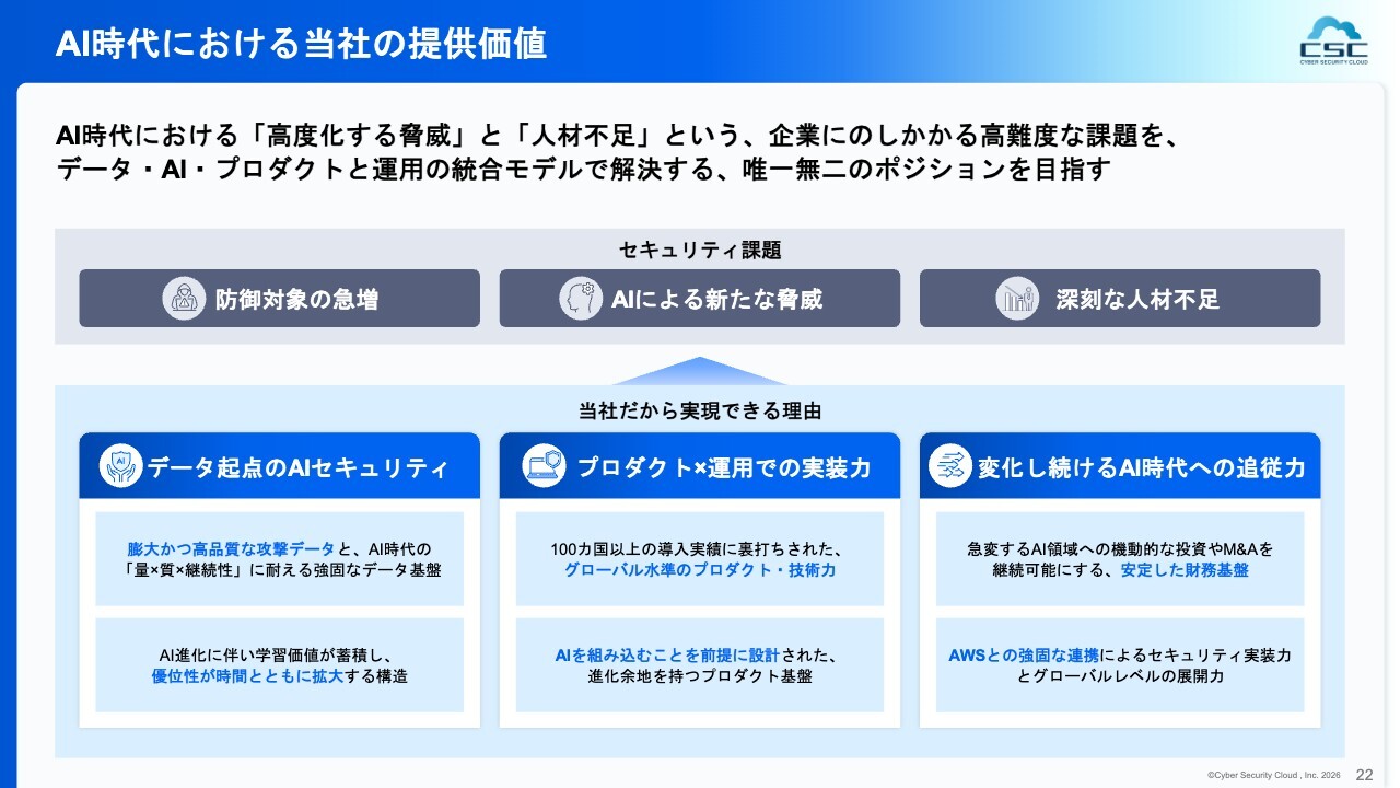 先日も、サイバー関連予算を増額するというニュースが報じられました。当社としても、この政府の動きや政策について注視しつつ、各所とコミュニケーションを取っている状況です。