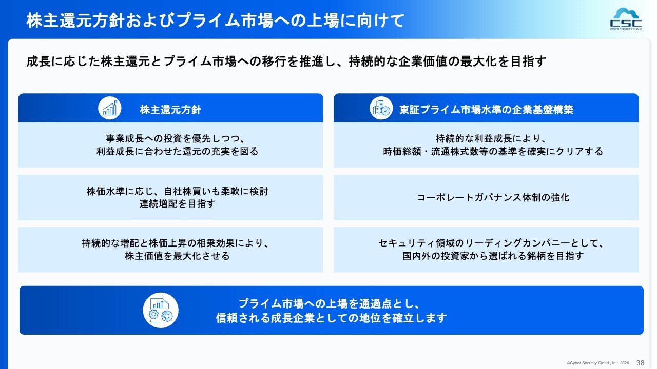 EPSを上げるということは、株主還元の原資を積み上げることと同義であると捉えています。その結果として、株主還元の観点から、配当や自社株買いの実施をしっかりと検討したいと思います。