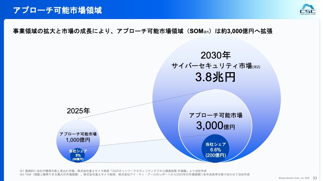 私も記憶しており、日常的にその点を意識しています。海外のサイバーセキュリティ企業には、現在1兆円規模を超え、2桁兆円規模に達するようなプレイヤーも存在します。世界的に見れば非常に大きな市場であり、日々そのことを考えながら悔しい思いをしているところです。