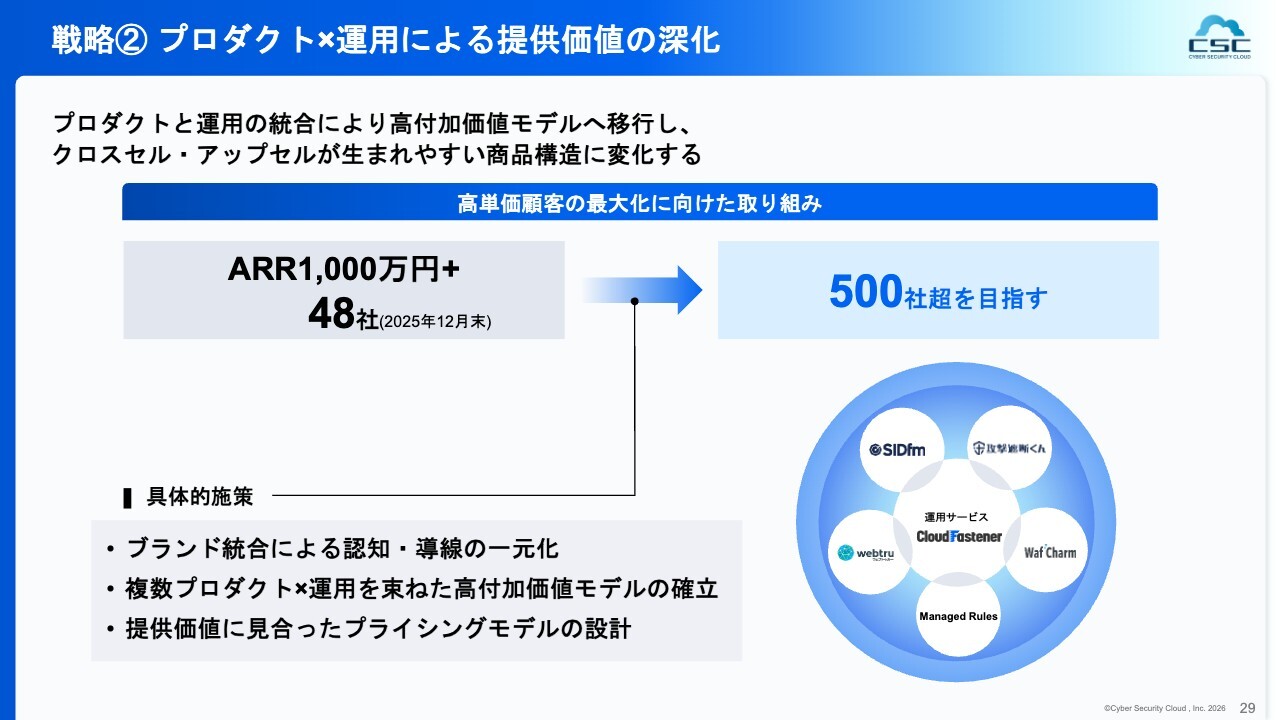 また、逆に、現在コア領域で進めている、特に先ほど決算発表でご説明した「CloudFastener」や「WafCharm」などの複数の製品を併用して導入いただいているお客さまとは、非常に良好な関係を築いています。日常的にお客さまと会話を交わしながら、「どのようにこの守りの部分を固めていけばいいか」といった話題について、当社のメンバーとお客さまで意見交換を行っています。