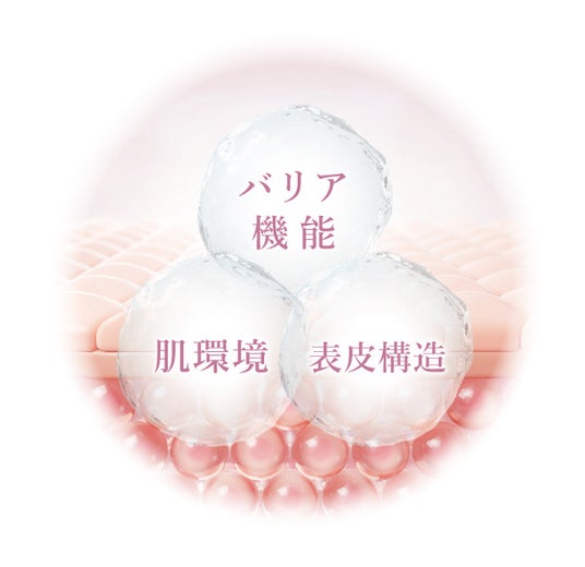 目もとの肌を「ただ守る」だけでなく、肌そのものの土台*⁷から整えることに着目。マデカッソシド、ツボクサ葉エキス、アシアチコシド、ツボクサエキスの4種類の高純度シカエキスを複合配合したアクシージア独自の「マルチシカコンプレックス*⁵」。「角質層のバリア機能」「肌環境」「皮膚構造」という3つの視点から多角的にアプローチします。乾燥などの外部刺激を受けやすいデリケートな目もとを穏やかに整え、キメの細かな、光を均一に反射するような、なめらかなツヤ肌へと導きます。
