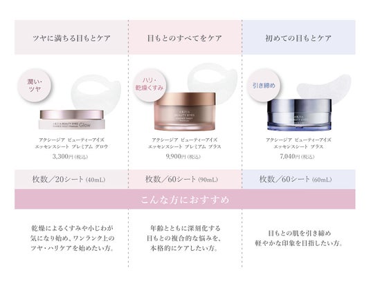 アクシージア ビューティーアイズ エッセンスシート シリーズ比較