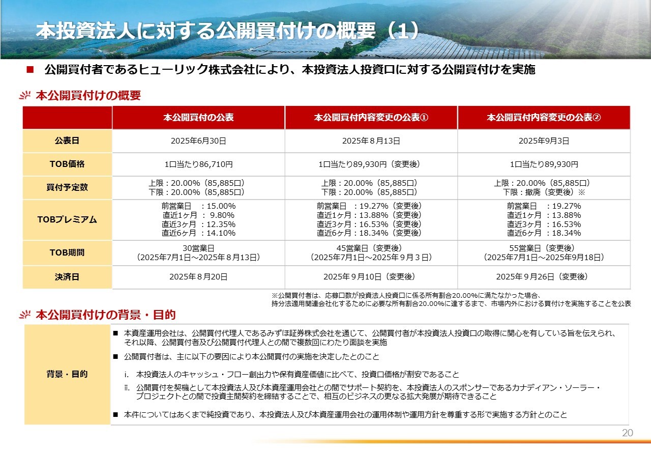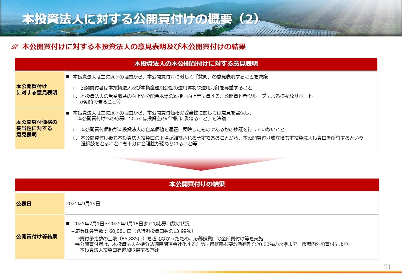 本投資法人にとって大きなマイルストーンとなった公開買付け(TOB)についてご報告します。