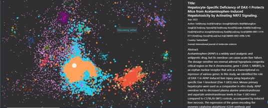 同システムは、第一三共が保有または今後蓄積される膨大な毒性試験報告書のテキスト情報とPubMedに掲載されている論文情報をKIBITで解析し、着目する毒性試験報告書と概念的に類似した学術論文や毒性試験報告書の関係性を、網羅的かつ視覚的に把握できるマップ(図)やリストなどの形式で提示します。