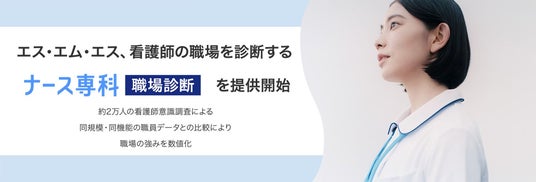 株式会社エス・エム・エス(本社:東京都港区、代表取締役社長:後藤夏樹、東証プライム、以下「当社」)は、9月2日(月)より看護師の職場を診断するツール「ナース専科 職場診断」の提供を開始することをお知らせします。