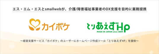 本提携により、介護/障害福祉事業者向け経営支援サービス「カイポケ」のユーザーに向けて、smallwebが開発・運営する簡単ホームページ作成ツール「とりあえずHP」を提供します。これにより、事業者が自社のホームページを活用し、より効果的な情報発信を行うことができる環境を整備します。