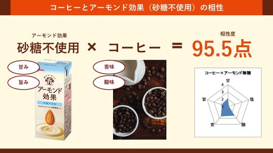 ■味覚AIセンサーの診断結果で判明!コーヒーとアーモンドミルクの相性は95.5点!