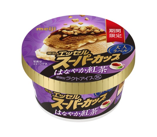 「明治 エッセル スーパーカップ 大人ラベル とことんショコラ」は2025年1月27日(月)よりコンビニエンスストアにて先行発売。2025年2月10日(月)より全経路にて期間限定で発売します。また、シリーズ初フレーバーとなる「同 はなやか紅茶」は、2025年2月10日(月)より全国にて期間限定で発売します。