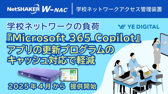 株式会社YE DIGITAL(本社:北九州市小倉北区、代表取締役社長:玉井裕治、以下YEデジタル)が提供する学校ネットワークアクセス管理装置「NetSHAKER W-NAC(以下、NetSHAKER)」のキャッシュ機能の対象に、『Microsoft 365 Copilot』アプリの更新プログラムが2025年4月から追加されます。