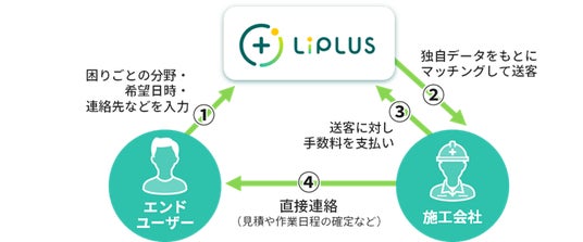 LiPLUSは、不用品回収、お庭の手入れ、ハウストラブルの解決といった生活領域の幅広いジャンルにおいてユーザーとプロフェッショナルのマッチングを行うプラットフォームの運営を通じて、暮らしの不便や不安を解決する「ホームサービス」を全国で展開しています。