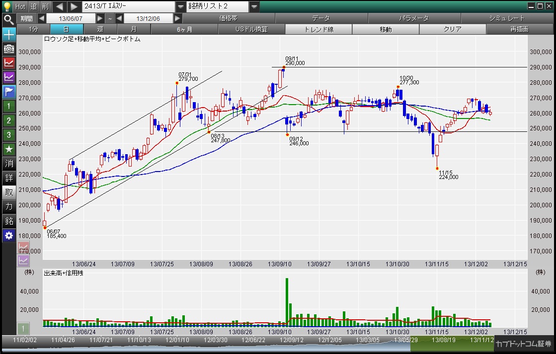 終値、8,700¥高の284,900¥。