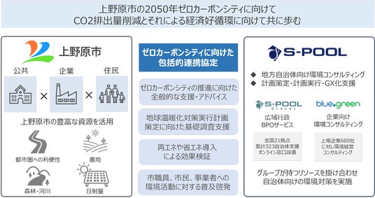 株式会社エスプール(本社:東京都千代田区/代表取締役会長兼社長:浦上 壮平/以下、「当社」)は、本日、山梨県上野原市(市長:村上 信行)と包括的連携協定を締結し、同市における脱炭素化の取り組みを開始することとなりました。