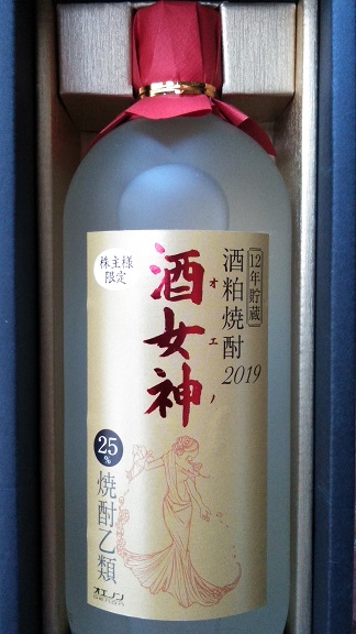 昔からの成り行きでオエノンホールディングス(2533)を少々持っているのですが、今回初めて株主優待がありました。 届いたのはもう少し前なのですが、優待品は焼酎でした。『酒女神』と書いて「オエノ」と読ませるようです。   ↑箱です  <