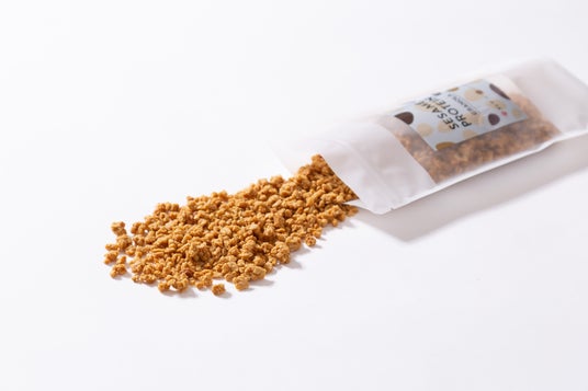 ごま油の製造工程では、たんぱく質や食物繊維を含む‘ミール’が残ってしまいます。かどや製油では、ごま一粒を余すところなく使いきるために、株式会社オリゼと共同で米麹グラノーラ セサミプロテインを商品化しました。米麹グラノーラ セサミプロテインは1食50gあたり10gのたんぱく質*が配合されており、ささみ肉約1本分相当のたんぱく質を手軽においしく取り入れることができます。セサミプロテインの香ばしい風味と、米麹から作った発酵由来のオリゼ甘味料のやさしい甘みを、朝ごはんやおやつタイムにぜひお楽しみください。