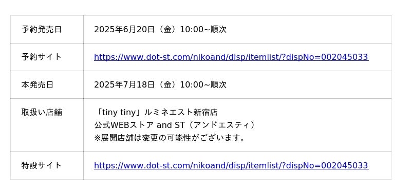 <公式ブランドサイト> https://www.nikoand.jp/brands/tiny-tiny/