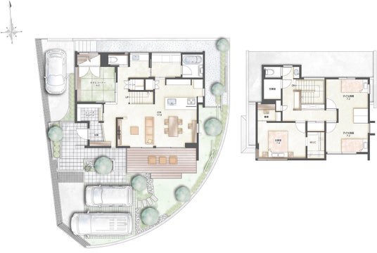 間取り 左:1階、右:2階