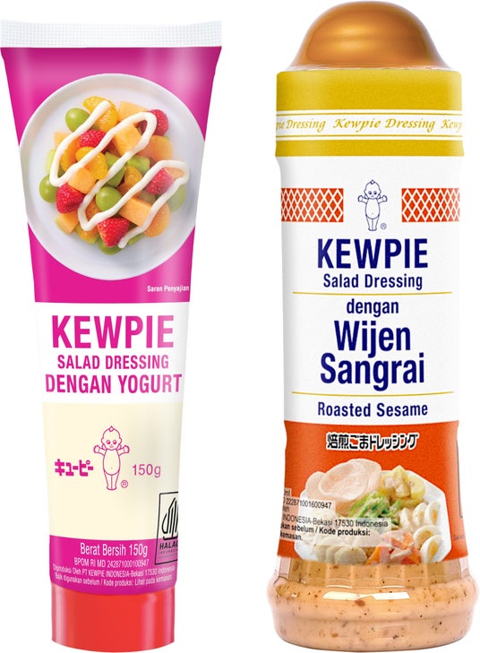 【インドネシア生産品目例】左キユーピー サラダドレッシング ヨーグルト風味、右キユーピー 焙煎ごまドレッシング(家庭用)