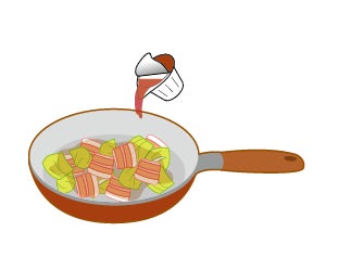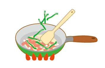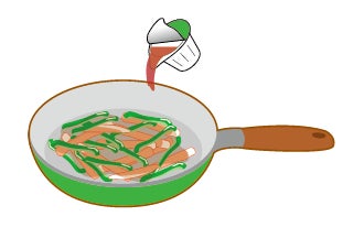 火が通ったらいったん火を止め本品を加え、再び火をつけ、炒め合わせて完成です。