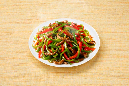 フライパンに油を熱し、牛肉(または豚肉)、ピーマンの順に炒めます。
