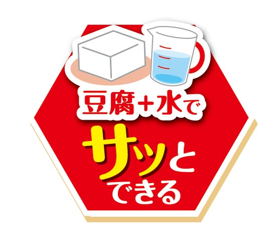 「プチッと中華 麻婆豆腐 中辛」は、フライパンに本品と豆腐、水を入れ煮込めば完成します。煮込むだけでとろみがつくので、とろみ付け不要です。また、大豆由来のそぼろが入っているので、肉を入れなくても具入りの麻婆豆腐に仕上がります。