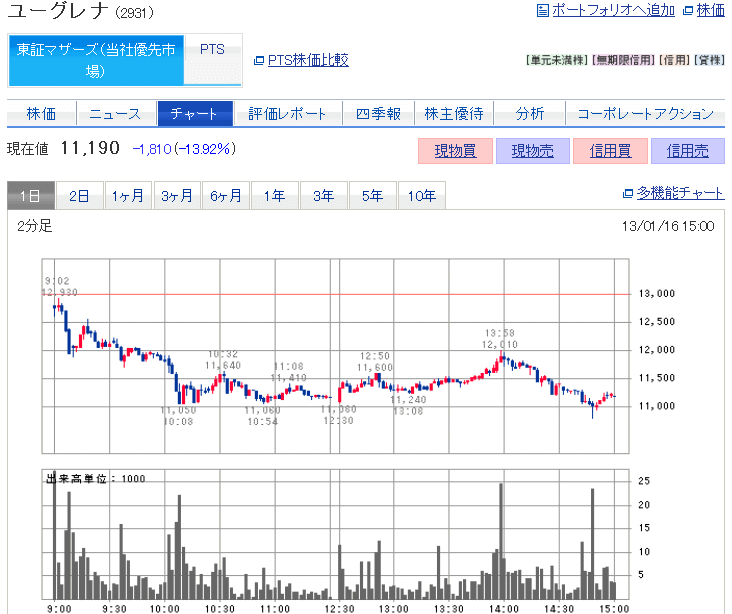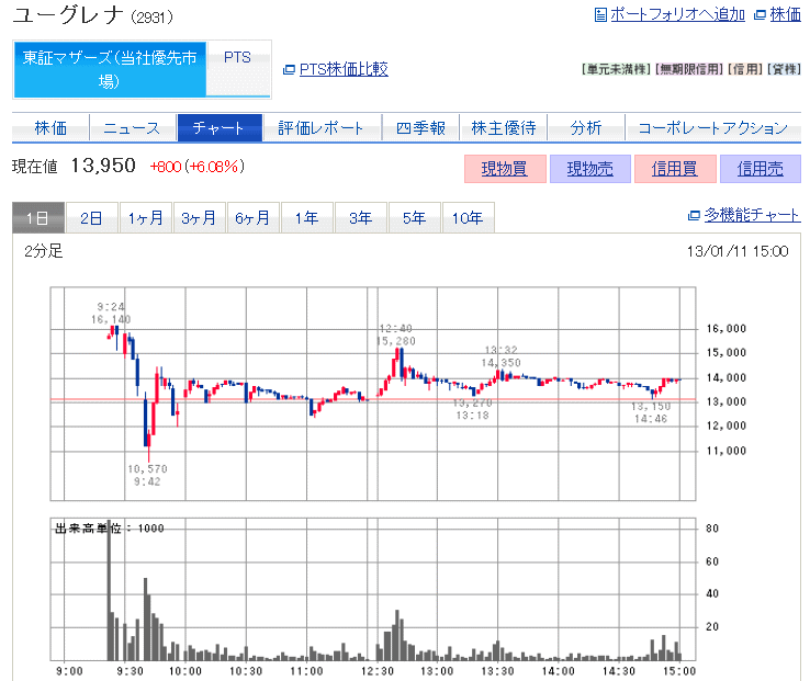 148円高ですか。高値を更新してきました。激しいことになってきました。ドル円が、89円まで行きました。こんなに上がっていいのでしょうか。今日も沢山の銘柄がストップ高です。今日も、ユーグレナを見ていました。激しい値動きです。ストップ高... ...続きを読む