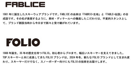 昨今、ウィンタースポーツ人口は縮小傾向にありますが、小さなスキーショップから始まったアルペンでは、より多くの方にウィンタースポーツの楽しさを知ってほしいという想いを基に、プライベートブランドの強化を続けております。現在はkissmark/Hart/FABLICEそして今年復活したFOLIOの4つのプライベートブランドを展開し、初心者の方も気軽に始めやすい価格設定ながら、機能性も備わった商品を提供し、皆様のゲレンデデビューを応援いたします。