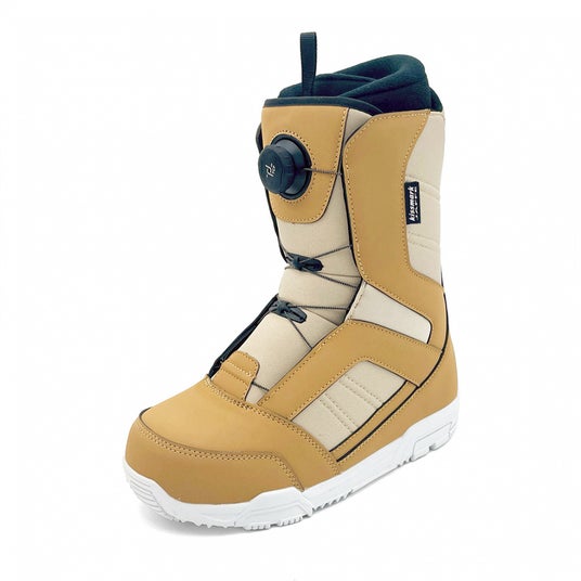 快適性にこだわり初級者向けに開発したブーツ。レースタイプのダイヤル式を採用することで、脱ぎ履きしやすく、ソフトなホールド感を実現しました。また、補強部にはソフトポリウレタン、その他はファブリック素材を採用することで、軽量化と柔軟性を向上させています。