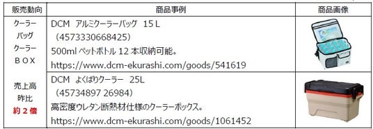 9月は、秋の行楽や運動会で使用するレジャー用品が伸長する中、残暑が厳しいので特にクーラーボックスが伸長しています。また、暑さにより散水する機会が増加し、ホースリールなどの散水用品が伸長しています。