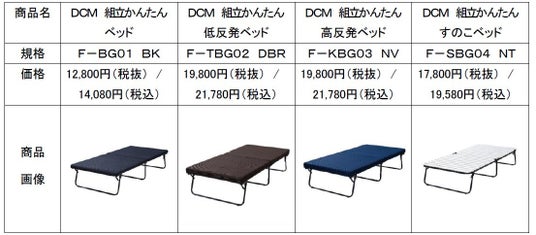工具不要ですぐに使用できる「DCM 組立かんたんベッド 」「DCM 組立かんたん低反発ベッド」「DCM 組立かんたん高反発ベッド」「DCM 組立かんたんすのこベッド」を新発売