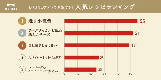 BRUNOファンサイト「BRUNOがある暮らし」は、「十人十色の“暮らしの愉しみ”が見つかる場所」がコンセプトのファンコミュニティで、BRUNOアイテムを使用した料理レシピやライフスタイル提案、商品紹介コラム、キャンペーンコンテンツなどを発信しております。今回は、BRUNOファンサイトの会員様が最もクリップ保存している人気レシピTOP5をご紹介いたします。