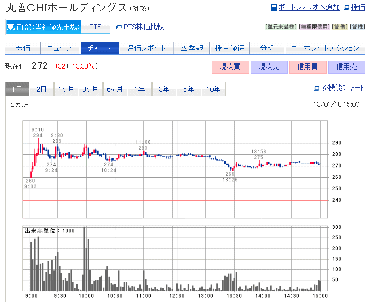 303円高ですか。バブルが来た。ドル円が90円を突破しました。これは止められません。どこまで行くか見ものです。今日は、丸善CHIホールディングスをやりました。昨日、最後に大量の買い気配で終わったので、くさいなと思っていたのです。夜間... ...続きを読む -