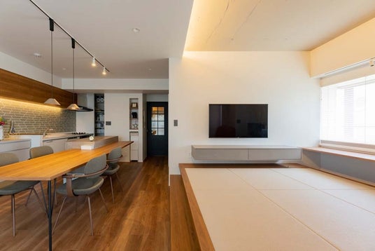これまで特にマンションのリノベーションにおいては、リビング横の和室を取り込み、LDKを広く確保するといったプランが主流でした。ところが2024年の傾向では、在宅ワークの定着によってセミオープンな空間が必要であったり、子供や高齢者のいる家庭では安全でゆったりと落ち着ける場所が必要であったりすることから、年代を問わず改めてリビング横に小上がりの畳(和室)を取り入れられるケースが多くみられるようになりました。