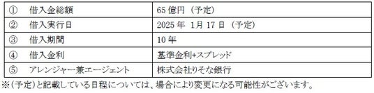 クマシュー工務店の株式取得を目的として、シンジケートローンによる資金の借入を行うものであります。