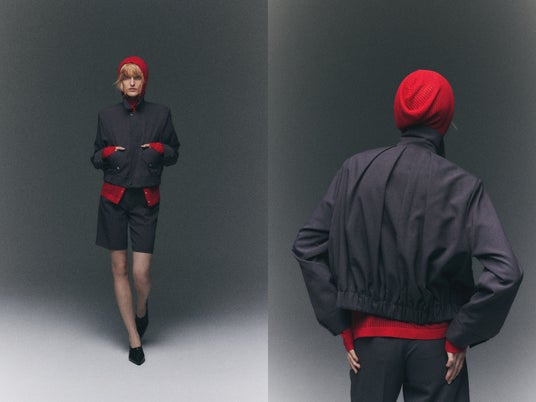 ブルゾンはバランスの取りやすい着丈と背中のタックデザインで、後ろ姿も印象的。