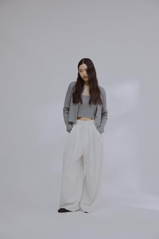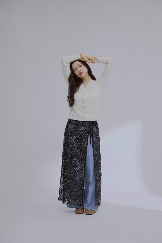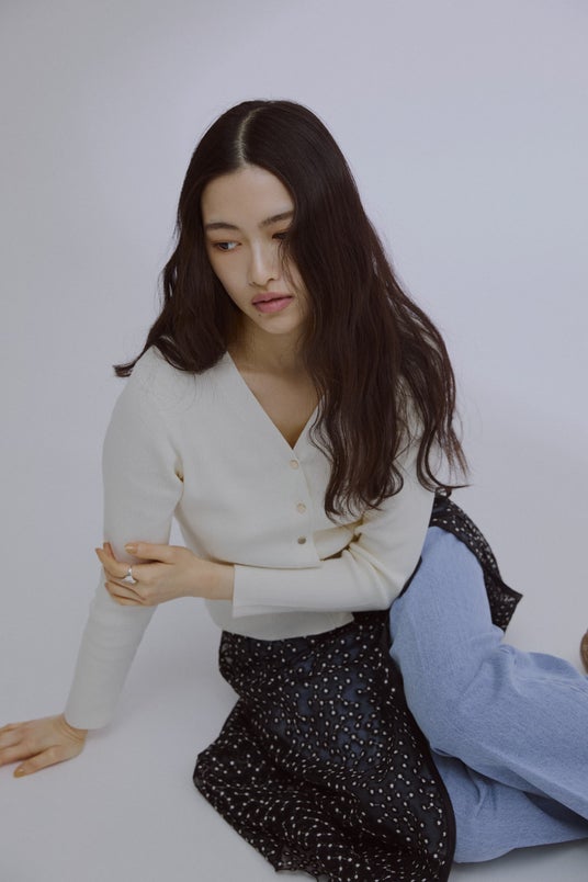 ウォッシャブルハイツイストVネックリブカーディガン ¥8,800(税込) カラー:ブラック/オフホワイト/L.イエロー/ピンク サイズ:S/M