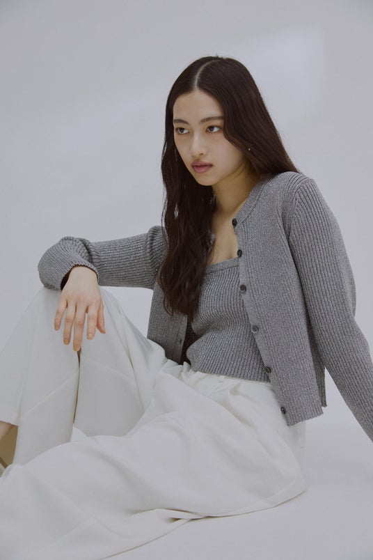 グリッターラメニットカーディガン(セットアップ可)¥13,200(税込) カラー:シルバー/ゴールド サイズ:F