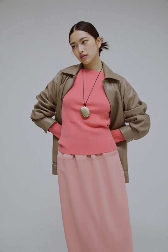 ウォッシャブルハイツイストボートネックリブニット ¥8,250(税込) カラー:ブラック/オフホワイト/L.イエロー/ピンク サイズ:S/M