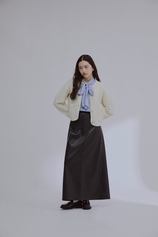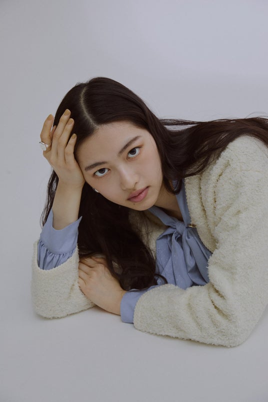 リボンヤーンニットジャケット ¥17,600(税込) カラー:オフホワイト/D.ネイビー サイズ:F